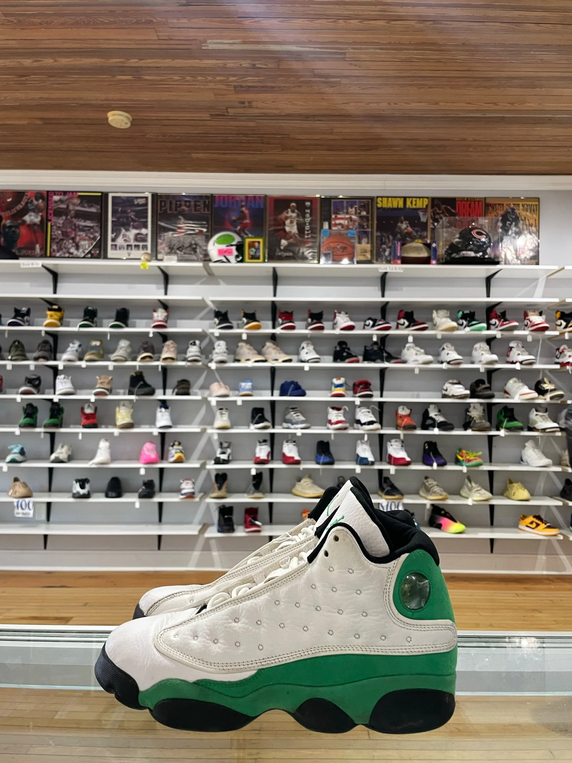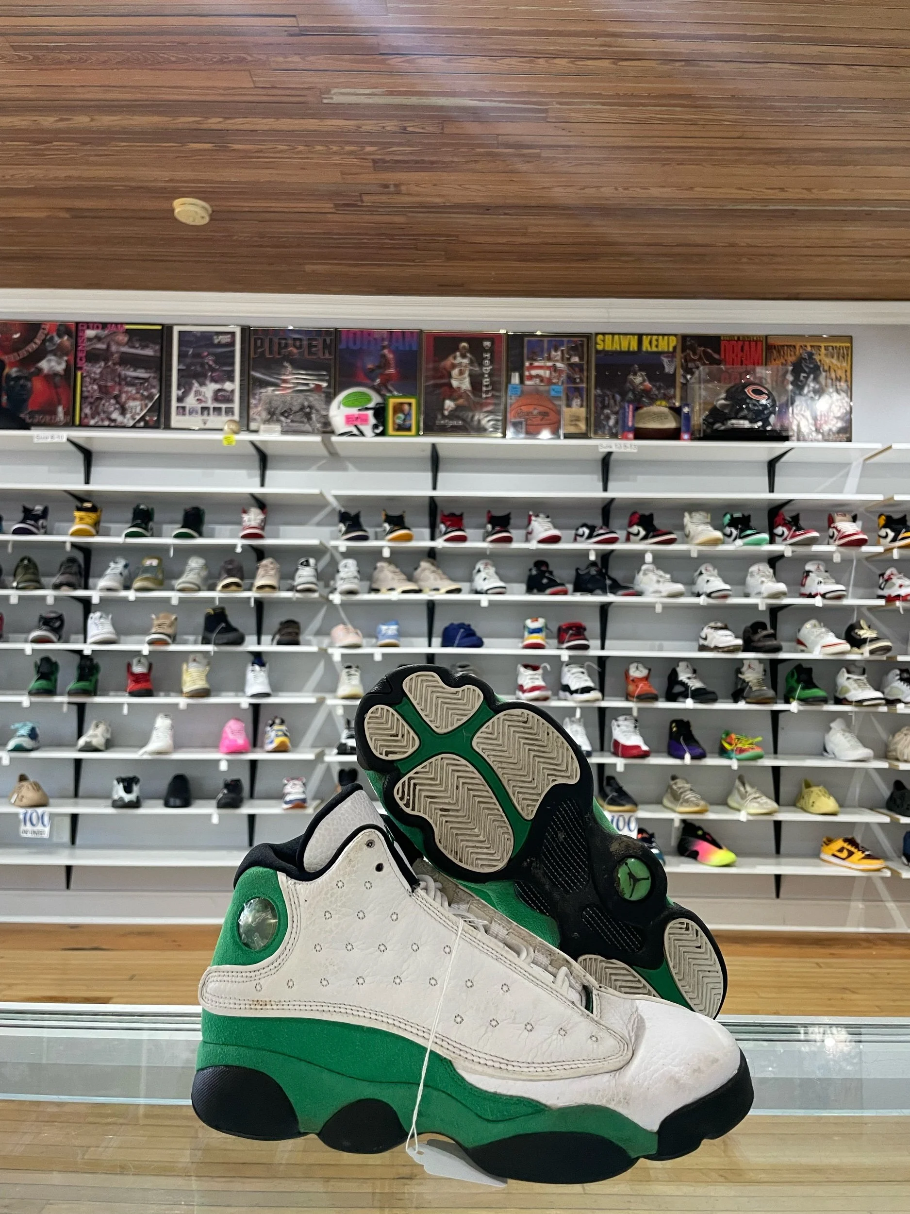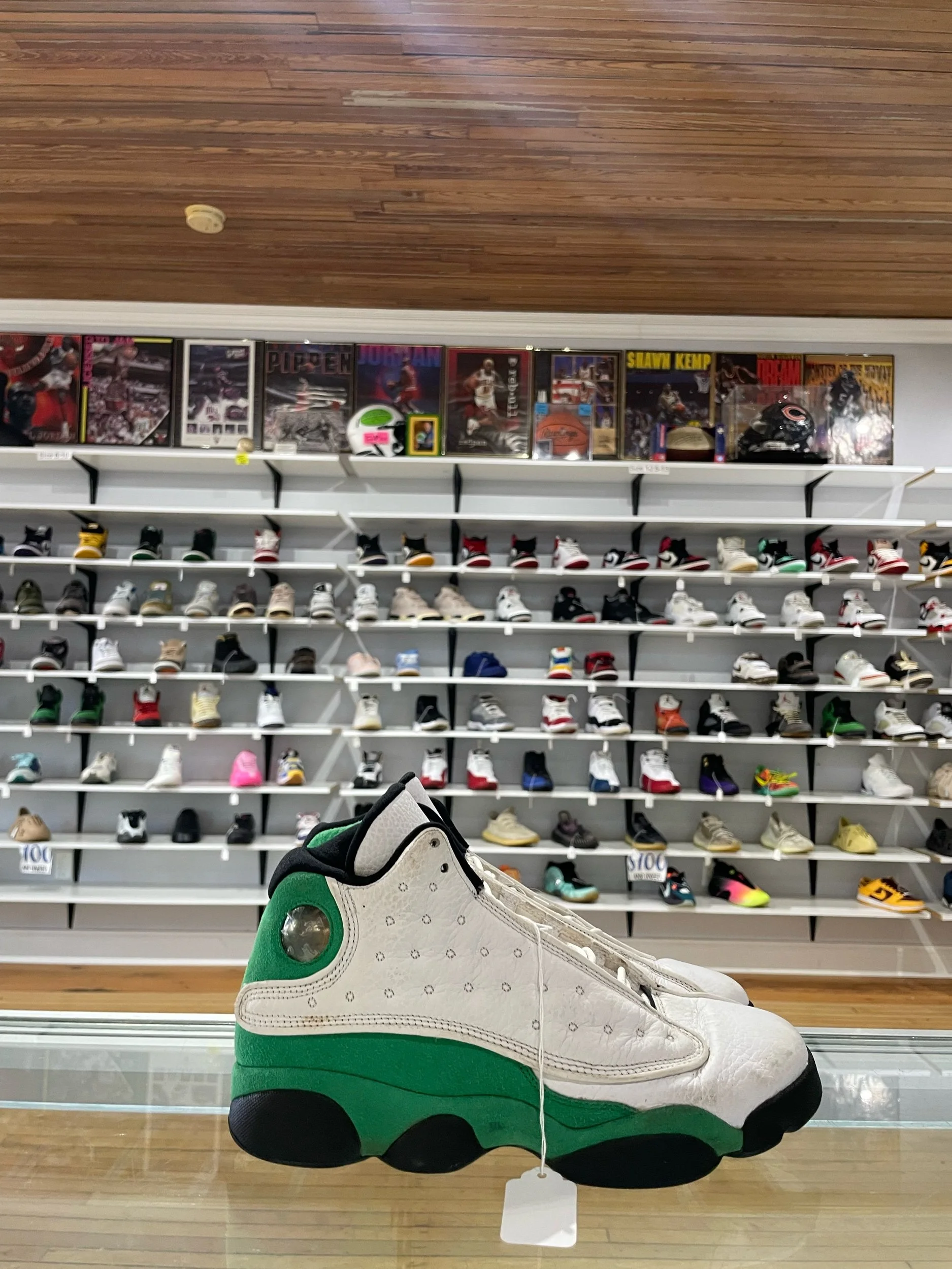 Shop › Size 7 Jordan 13 Lucky Green Image 1 of 5 Image 2 of 5 Image 3 of 5 Image 4 of 5 Image 5 of 5 Size 7 Jordan 13 Lucky Green $30.00 Pre-Owned/NO BOX Quantity: Add To Cart Added! Pre-Owned/NO BOX