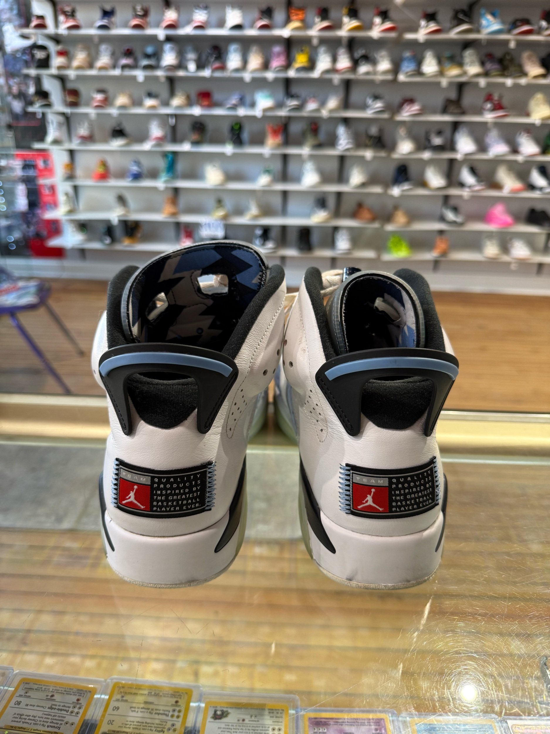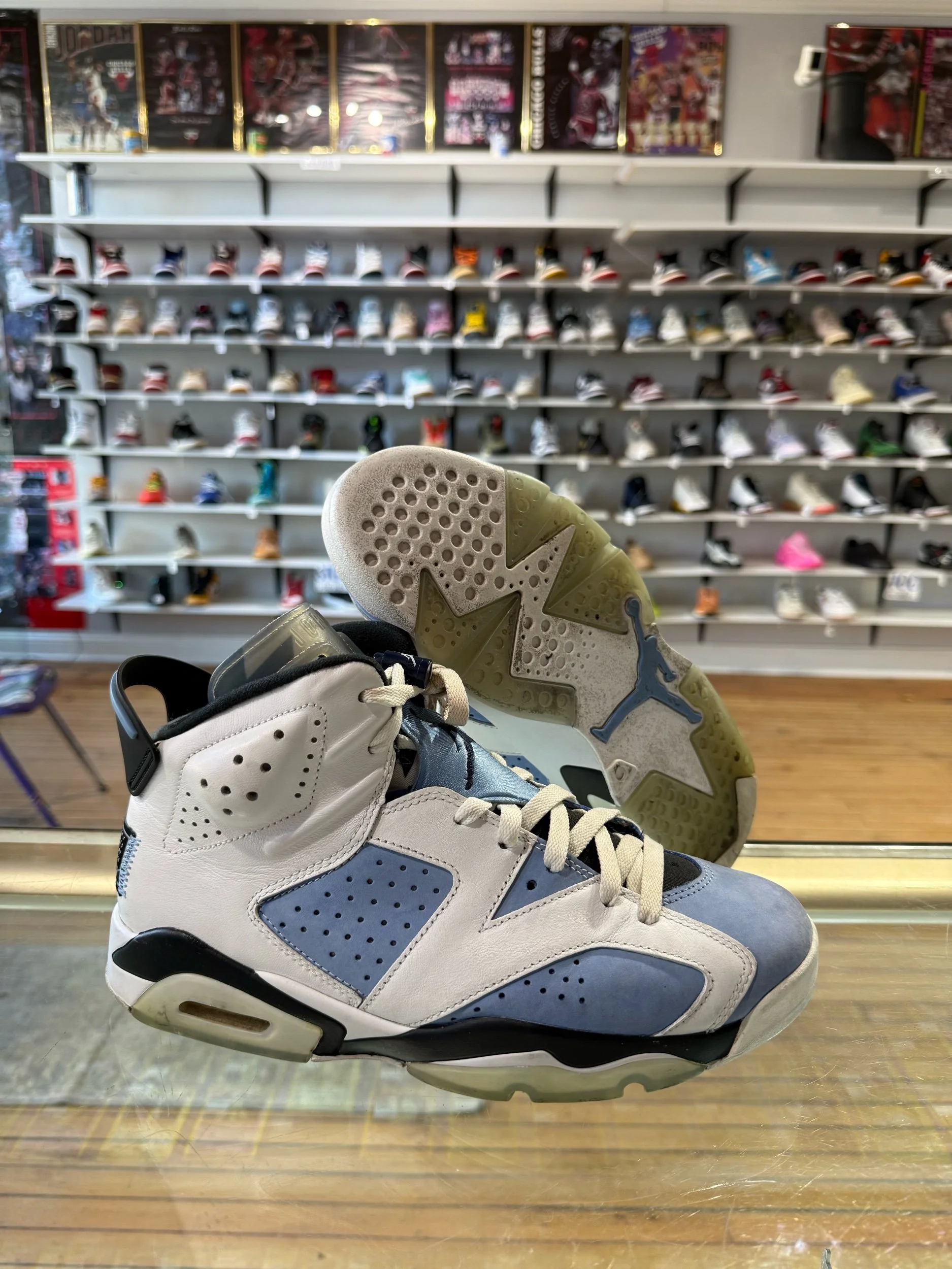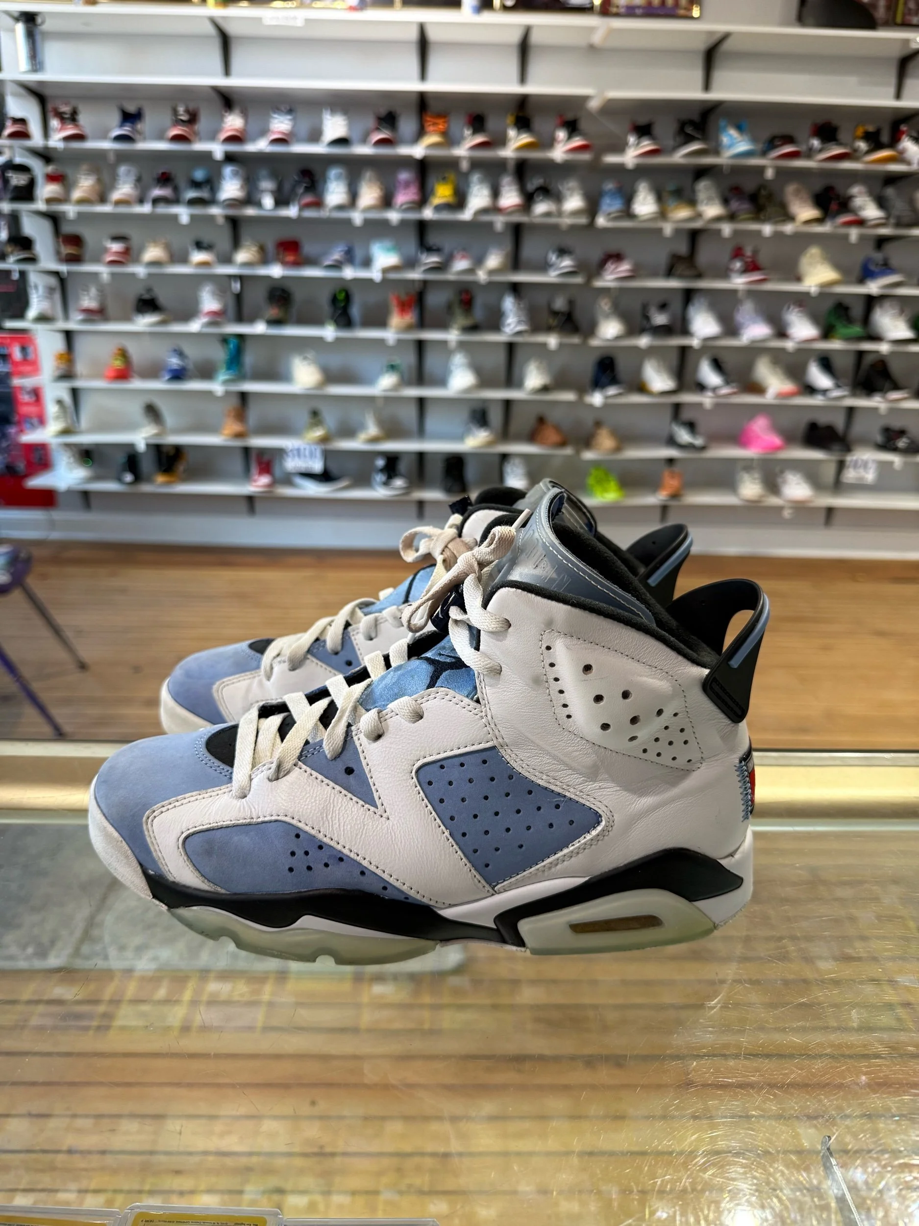 Shop › Size 10 Jordan 6 UNC Image 1 of 5 Image 2 of 5 Image 3 of 5 Image 4 of 5 Image 5 of 5 Size 10 Jordan 6 UNC $60.00 PreOwned/No Box Quantity: Add To Cart Added! PreOwned/No Box