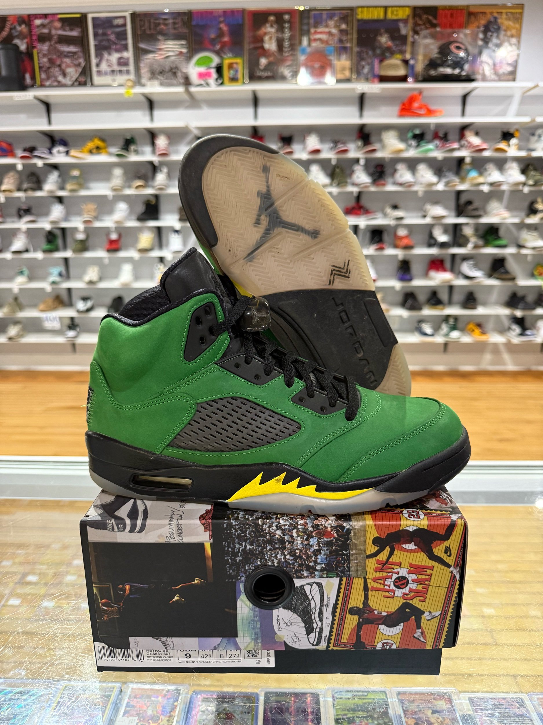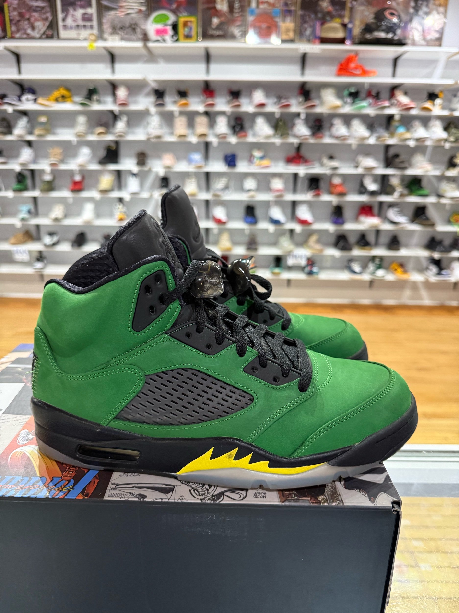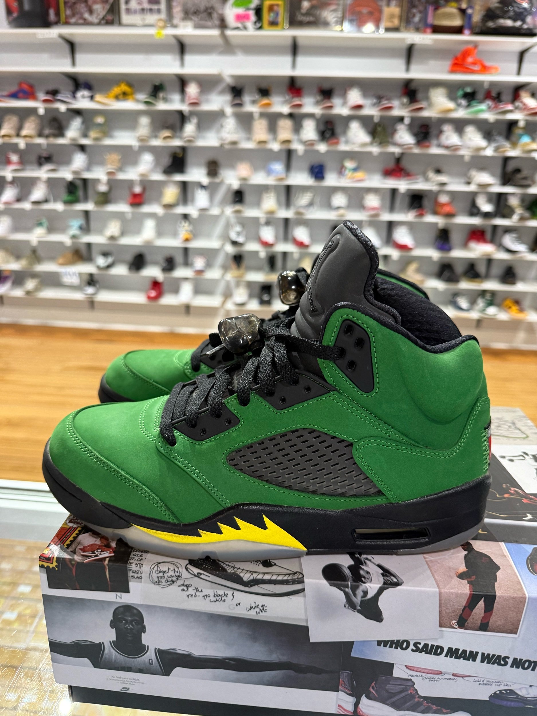 Shop › Size 9 Jordan 5 Oregon Image 1 of 5 Image 2 of 5 Image 3 of 5 Image 4 of 5 Image 5 of 5 Size 9 Jordan 5 Oregon $140.00 Pre-Owned/Og All Quantity: Add To Cart Added! Pre-Owned/Og All