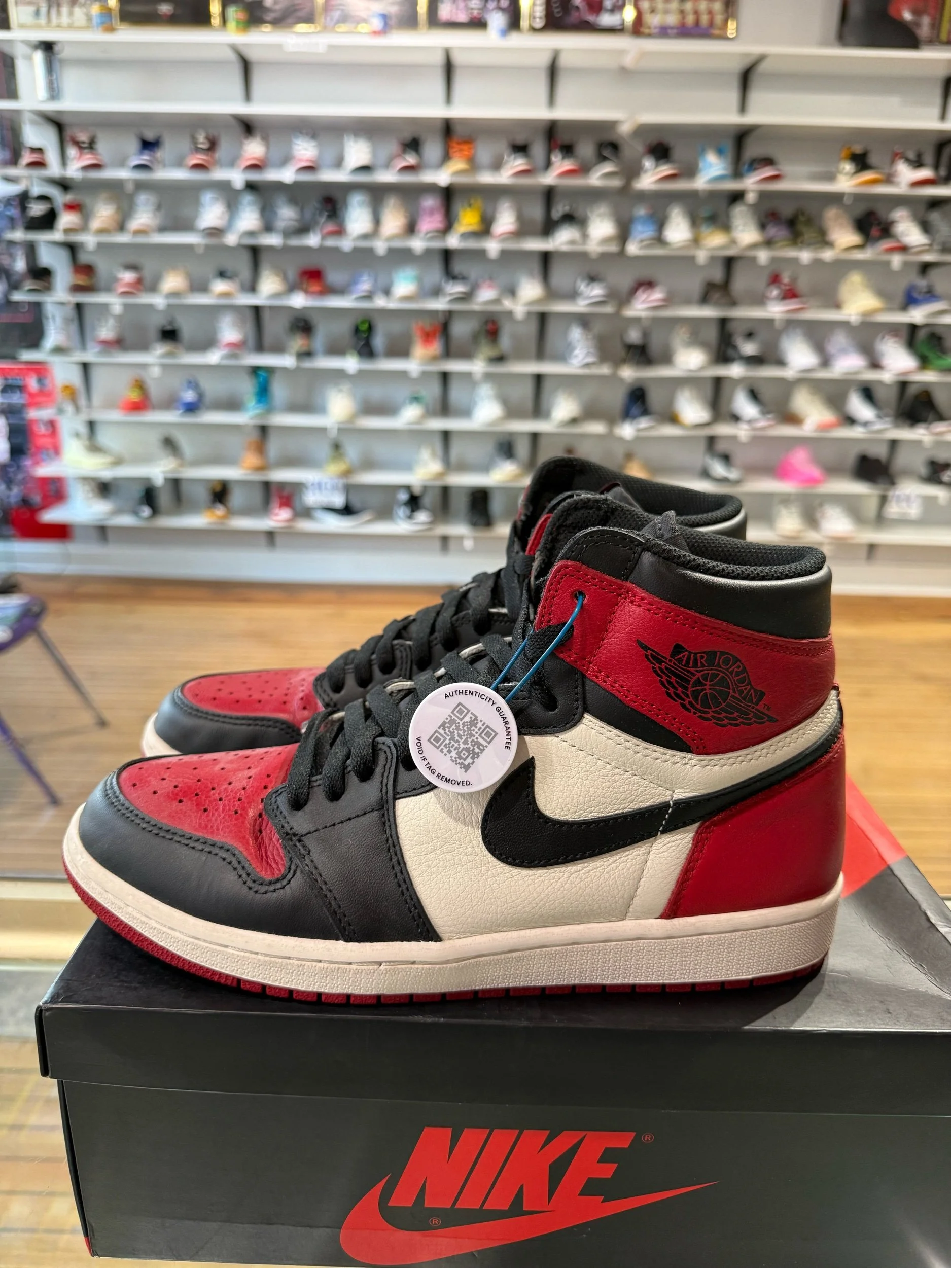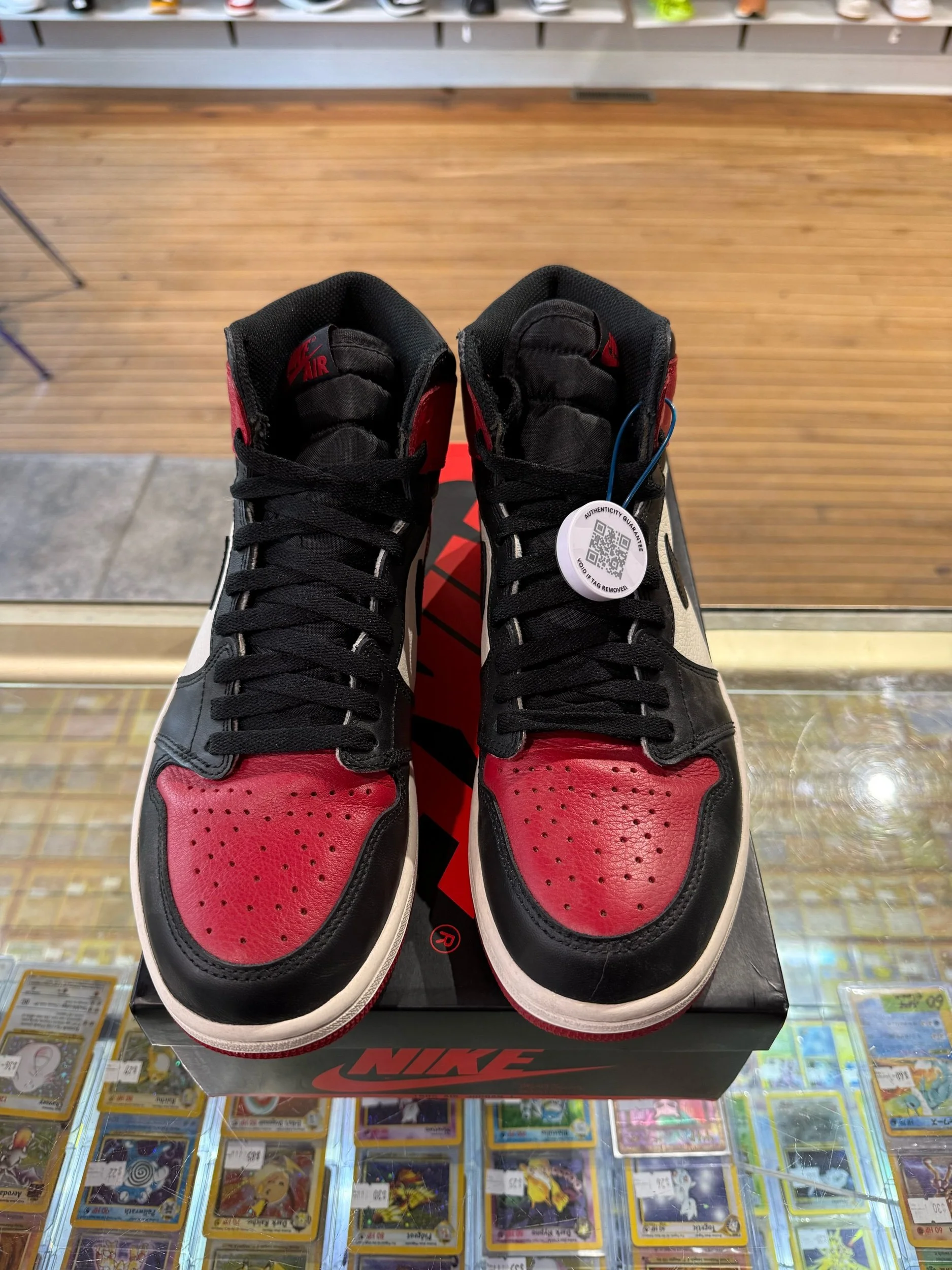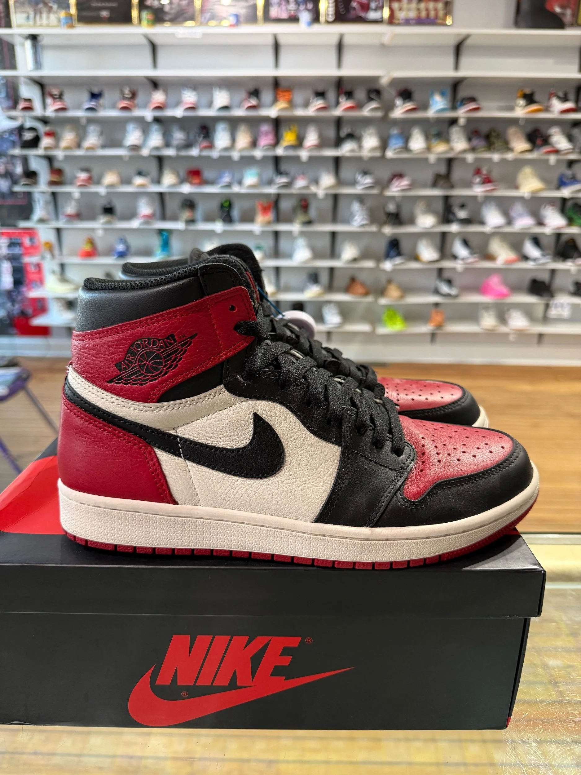 Shop › Size 9 Jordan 1 Bred Toe Image 1 of 5 Image 2 of 5 Image 3 of 5 Image 4 of 5 Image 5 of 5 Size 9 Jordan 1 Bred Toe $180.00 Pre-Owned/Replacement Box Quantity: Add To Cart Added! Pre-Owned/Replacement Box