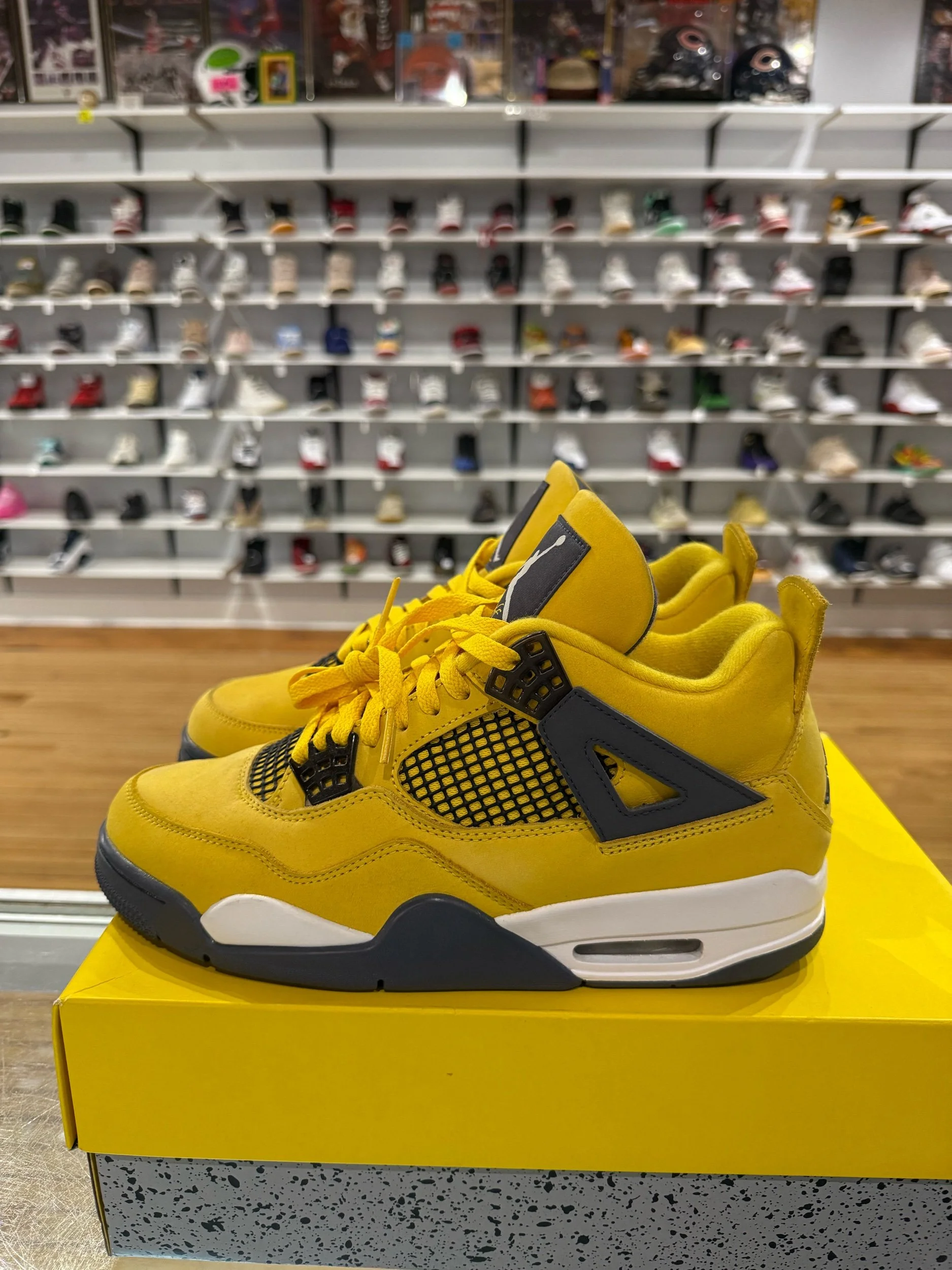 Shop › Size 9 Jordan 4 Lighting Image 1 of 5 Image 2 of 5 Image 3 of 5 Image 4 of 5 Image 5 of 5 Size 9 Jordan 4 Lighting $140.00 Pre-Owned/Og All Quantity: Add To Cart Added! Pre-Owned/Og All