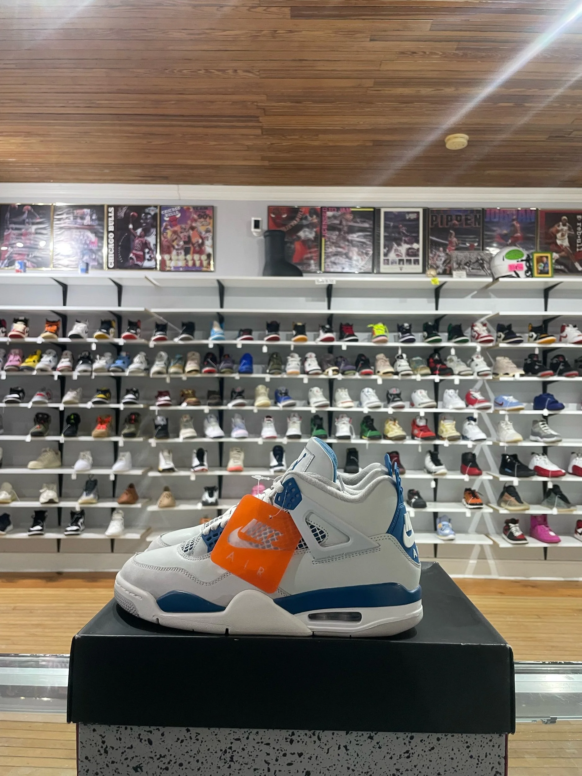 Shop › Size 9.5 Jordan 4 Military Blue Image 1 of 5 Image 2 of 5 Image 3 of 5 Image 4 of 5 Image 5 of 5 Size 9.5 Jordan 4 Military Blue $160.00 Pre-Owned/Og All Quantity: Add To Cart Added! Pre-Owned/Og All