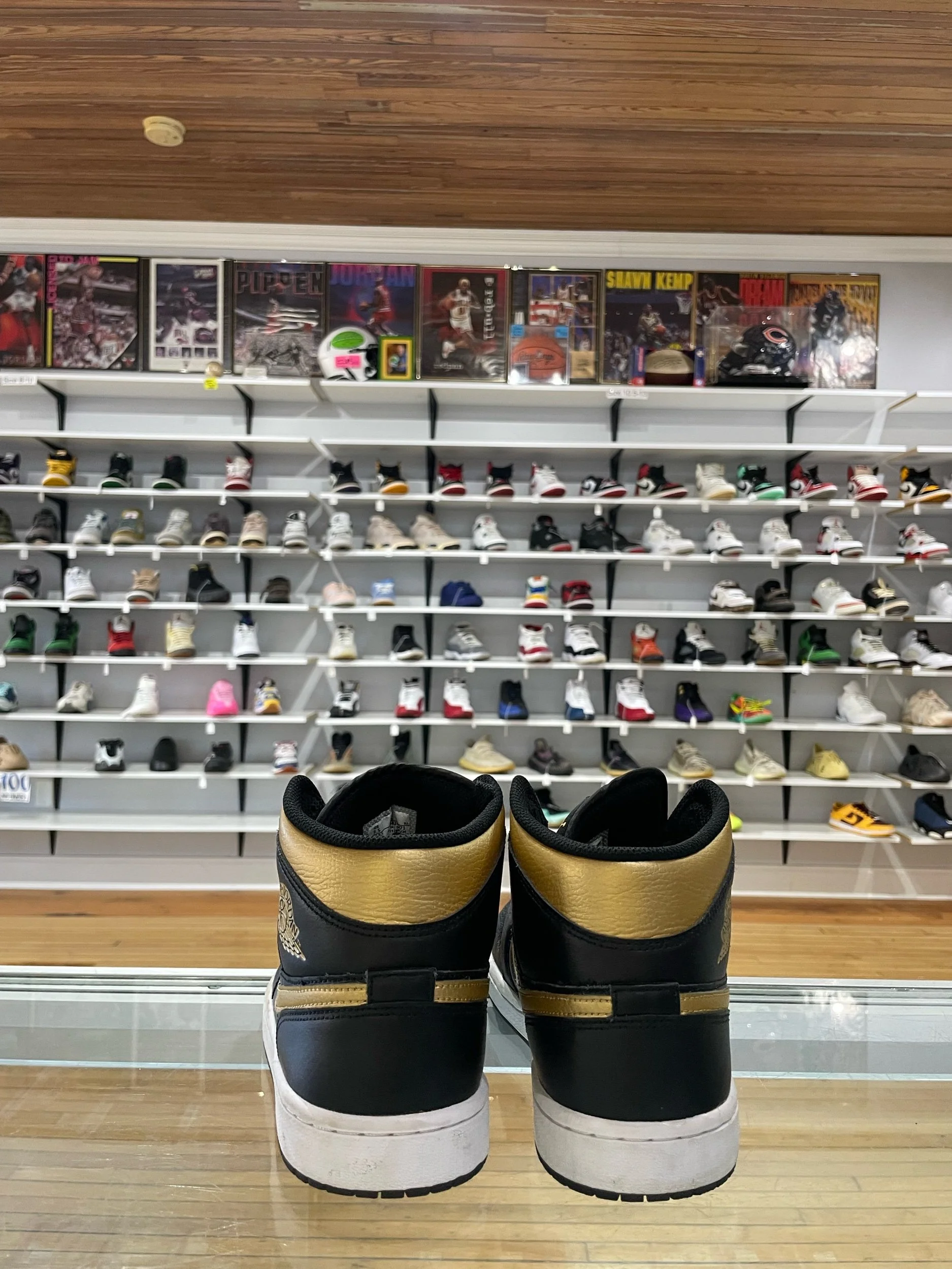 Shop › Size 9.5 Jordan 1 Mid Gold Medallion Image 1 of 5 Image 2 of 5 Image 3 of 5 Image 4 of 5 Image 5 of 5 Size 9.5 Jordan 1 Mid Gold Medallion $40.00 Pre-Owned/NO BOX Quantity: Add To Cart Added! Pre-Owned/NO BOX