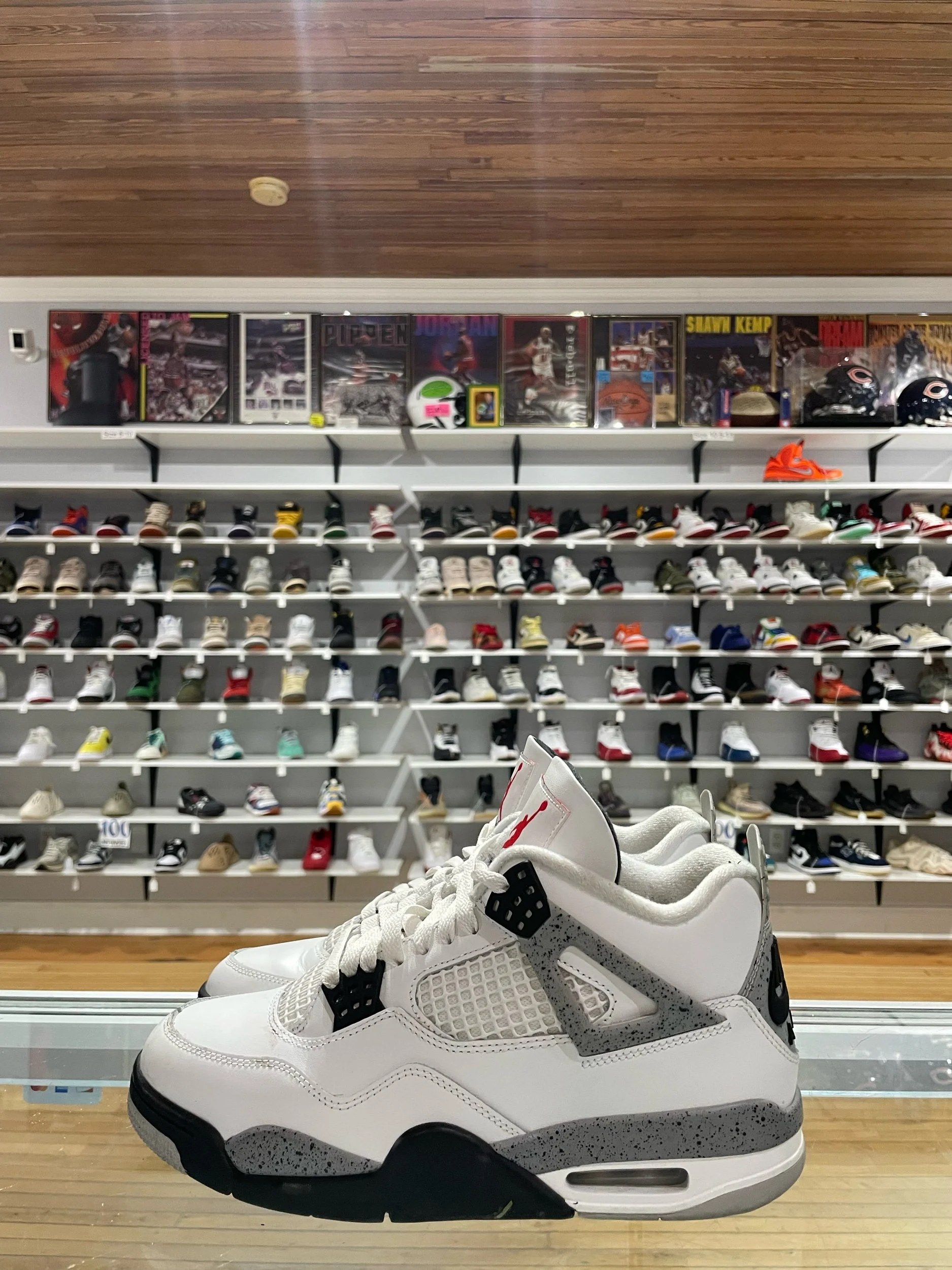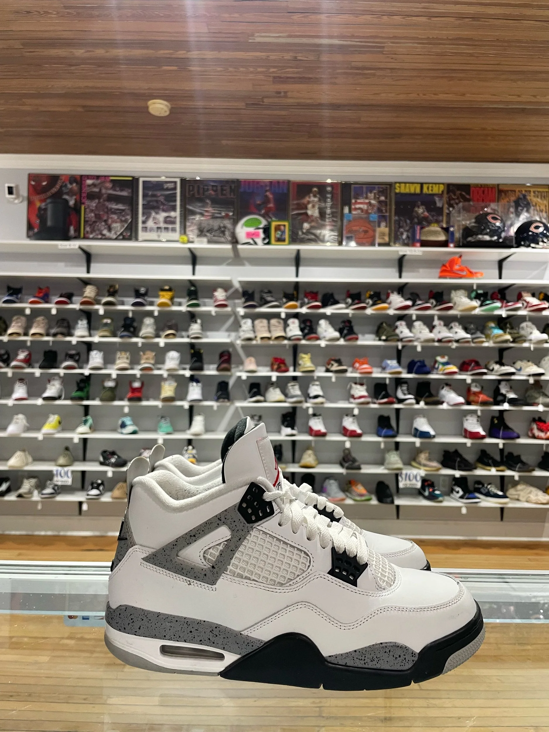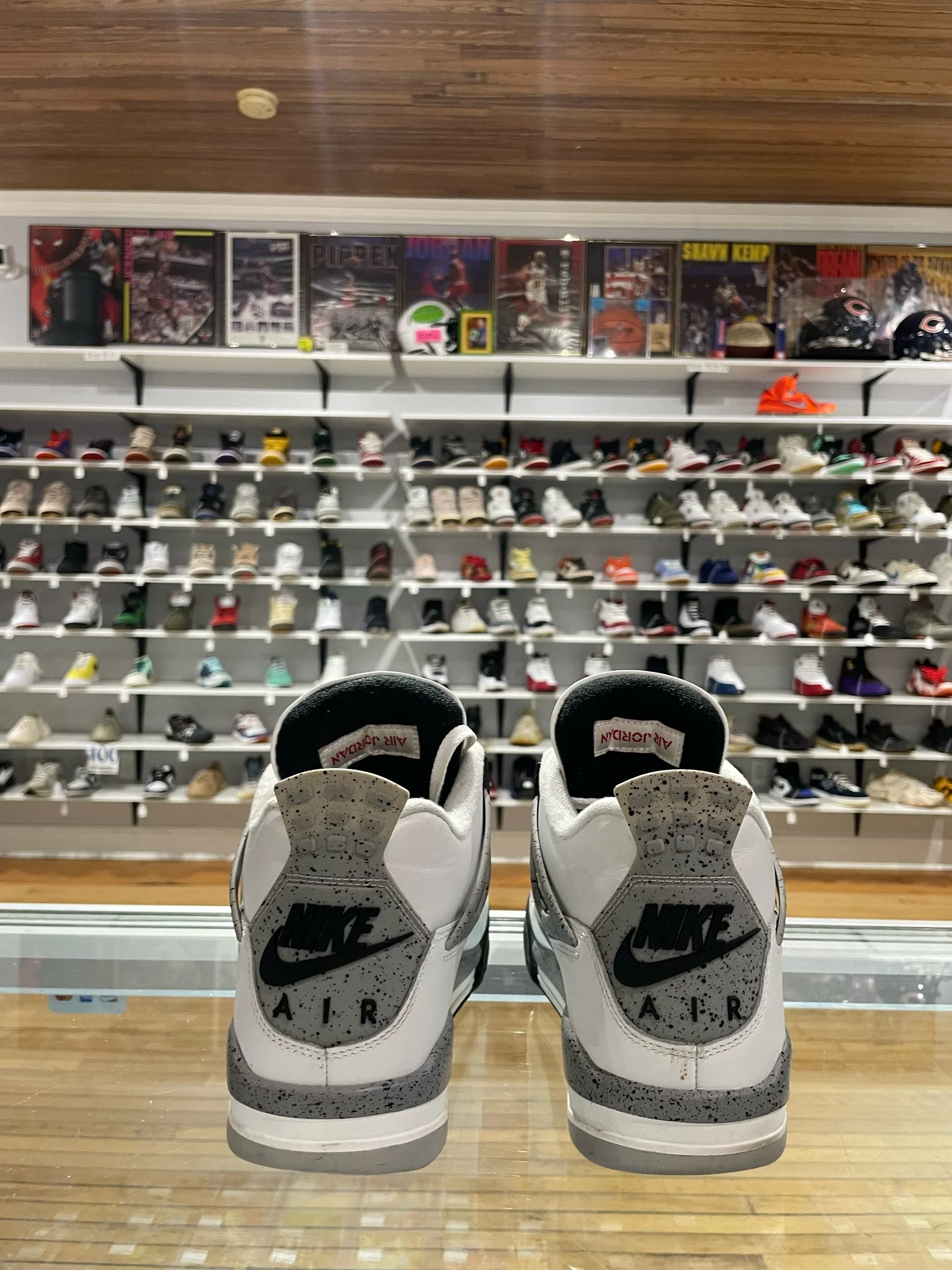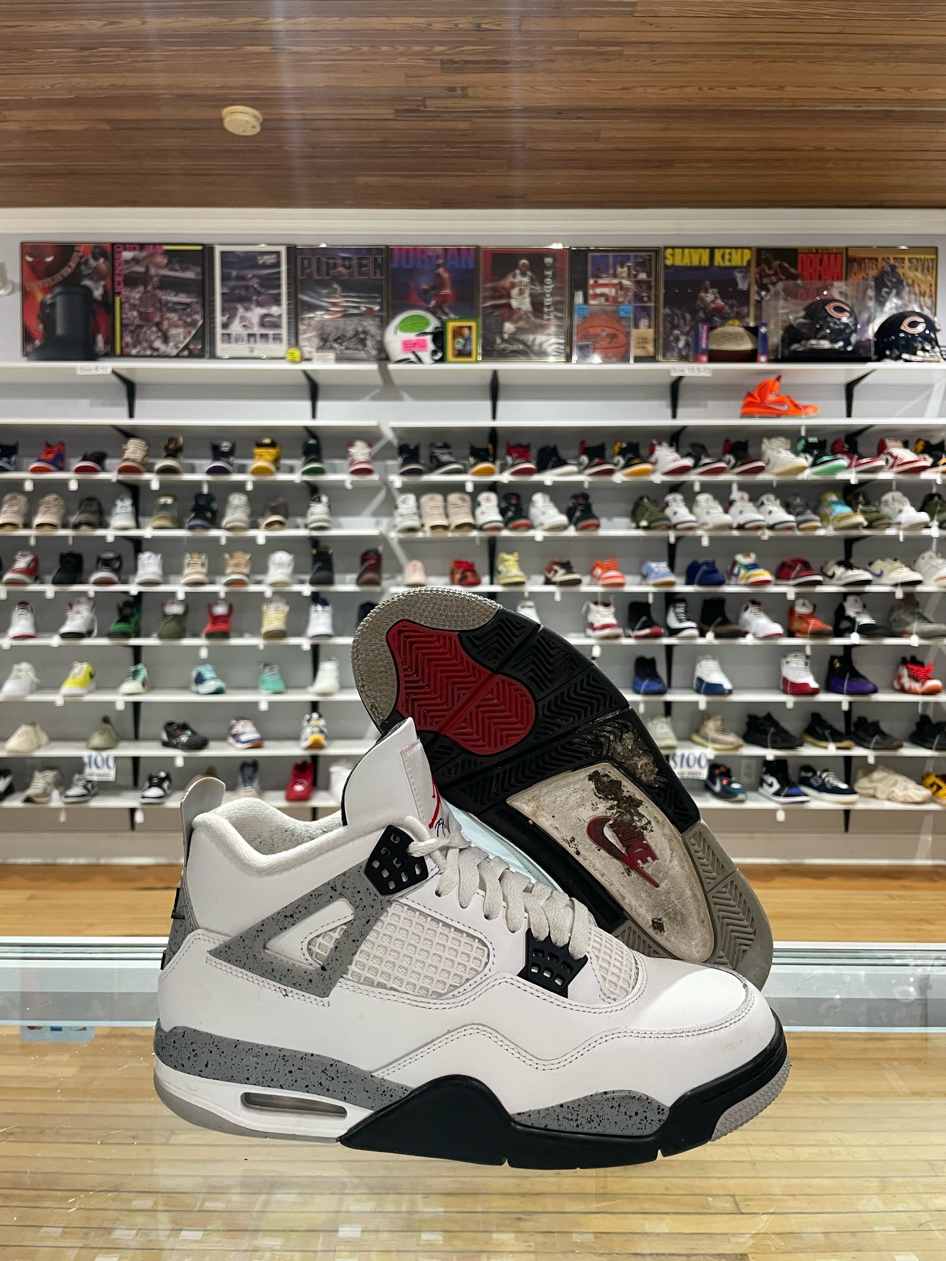 Shop › Size 9 Jordan 4 White Cement Image 1 of 5 Image 2 of 5 Image 3 of 5 Image 4 of 5 Image 5 of 5 Size 9 Jordan 4 White Cement $140.00 Pre-Owned/NO BOX Quantity: Add To Cart Added! Pre-Owned/NO BOX