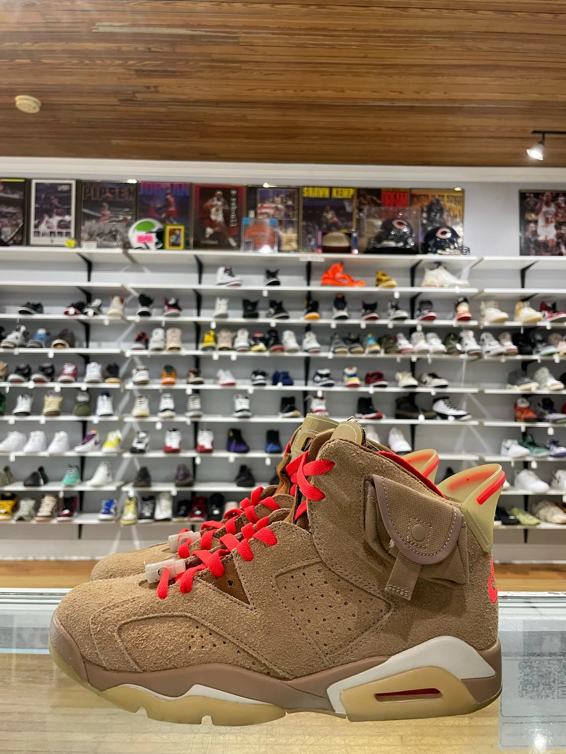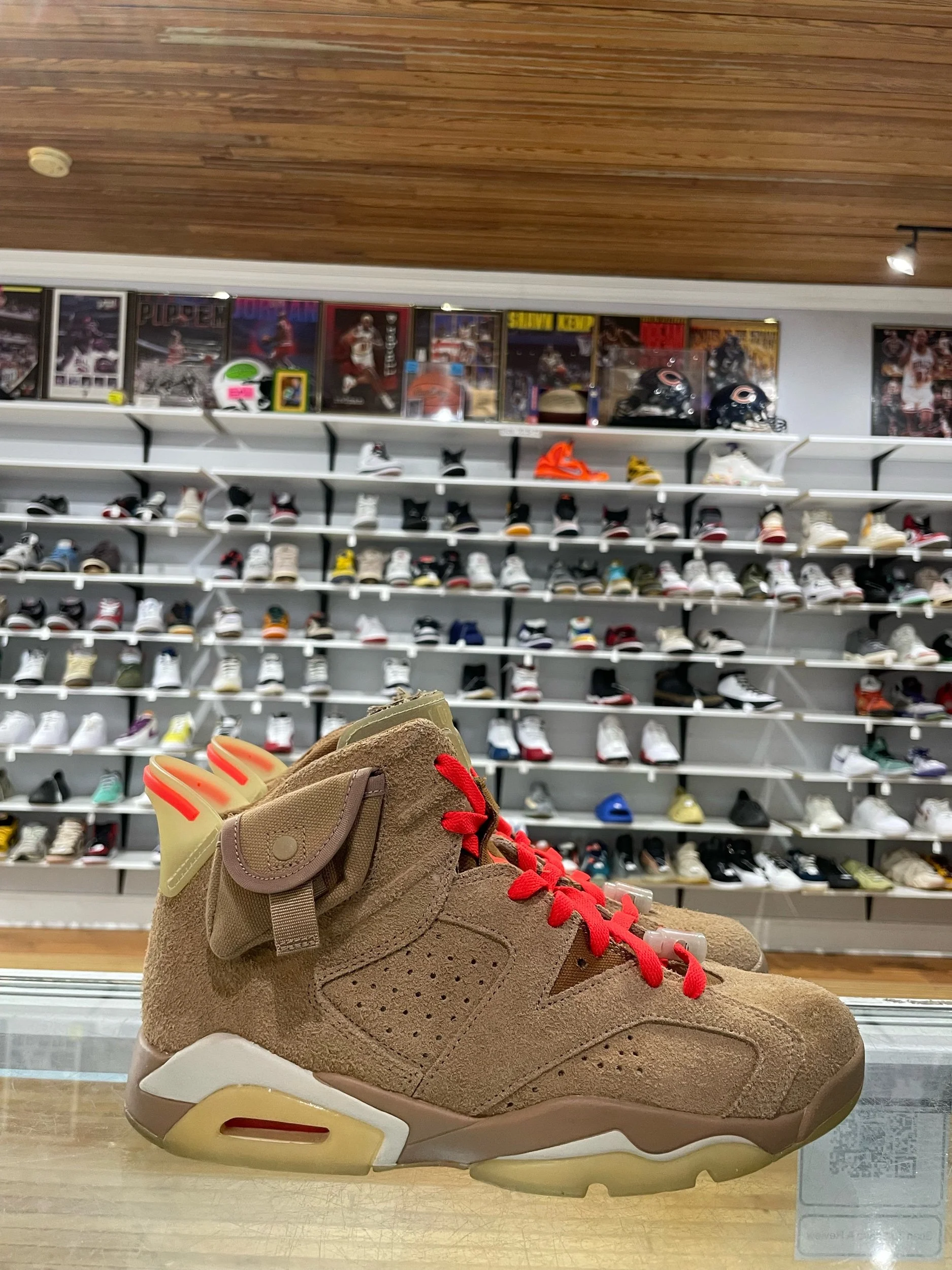 Shop › Size 8.5 Jordan 6 Khaki Travis Scott Image 1 of 5 Image 2 of 5 Image 3 of 5 Image 4 of 5 Image 5 of 5 Size 8.5 Jordan 6 Khaki Travis Scott $160.00 Pre-Owned/NO BOX Quantity: Add To Cart Added! Pre-Owned/NO BOX