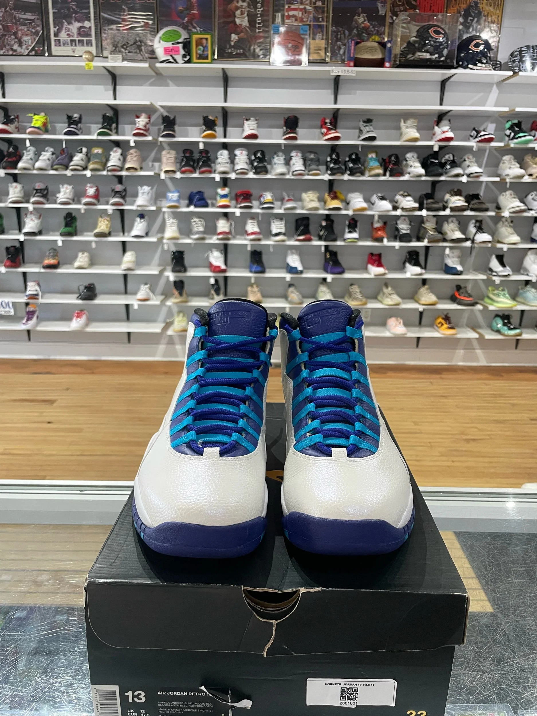 Shop › Size 13 Jordan 10 Hornets Image 1 of 5 Image 2 of 5 Image 3 of 5 Image 4 of 5 Image 5 of 5 Size 13 Jordan 10 Hornets $150.00 Pre-Owned/Og All Add To Cart Added! Pre-Owned/Og All