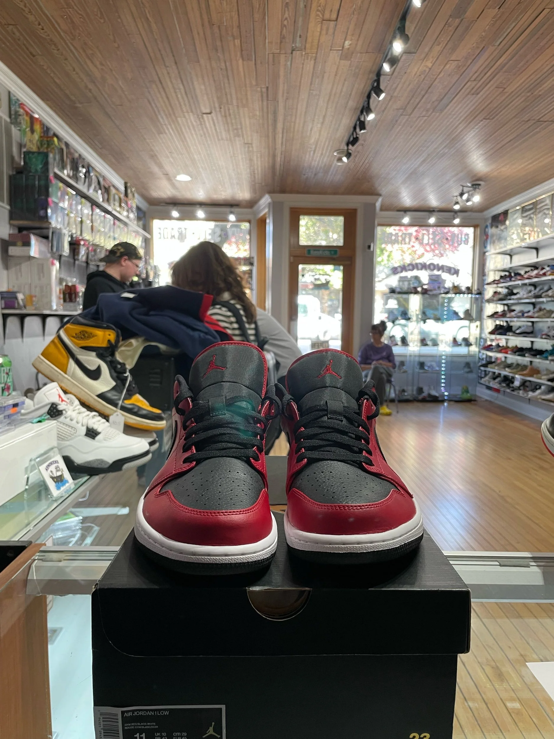 Shop › Size 11 Jordan 1 Low Bred Image 1 of 5 Image 2 of 5 Image 3 of 5 Image 4 of 5 Image 5 of 5 Size 11 Jordan 1 Low Bred $40.00 Pre-Owned/Og All Quantity: Add To Cart Added! Pre-Owned/Og All